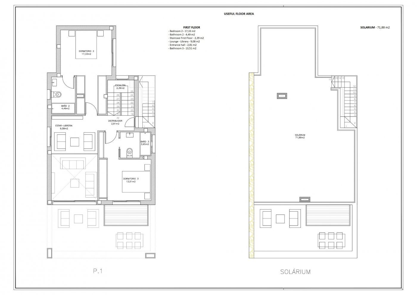 Las villas tienen 4 dormitorios, 4 baños, cocina abierta con el salón, armarios empotrados, jardín privado con la piscina y plaza de aparcamiento fuera de la carretera, solarium privado y sótano.
