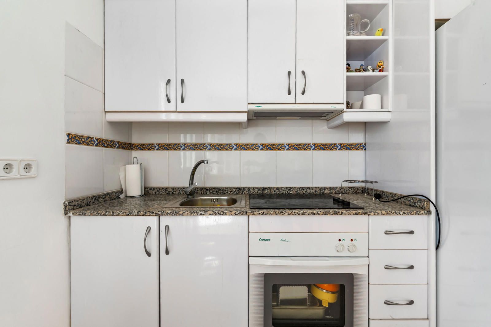 Planta principal: acceso directo desde la calle, cocina americana integrada en un salón amplio y luminoso, baño completo y una estupenda terraza con vistas a la piscina comunitaria y a las zonas ajardinadas.