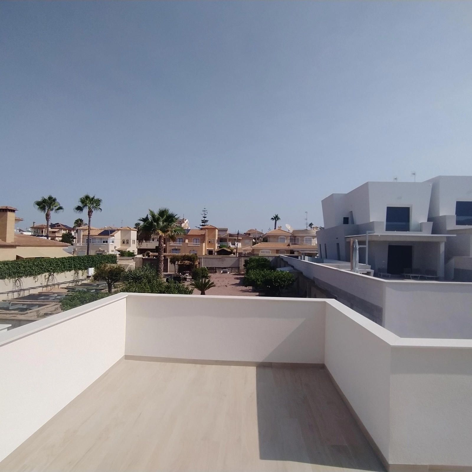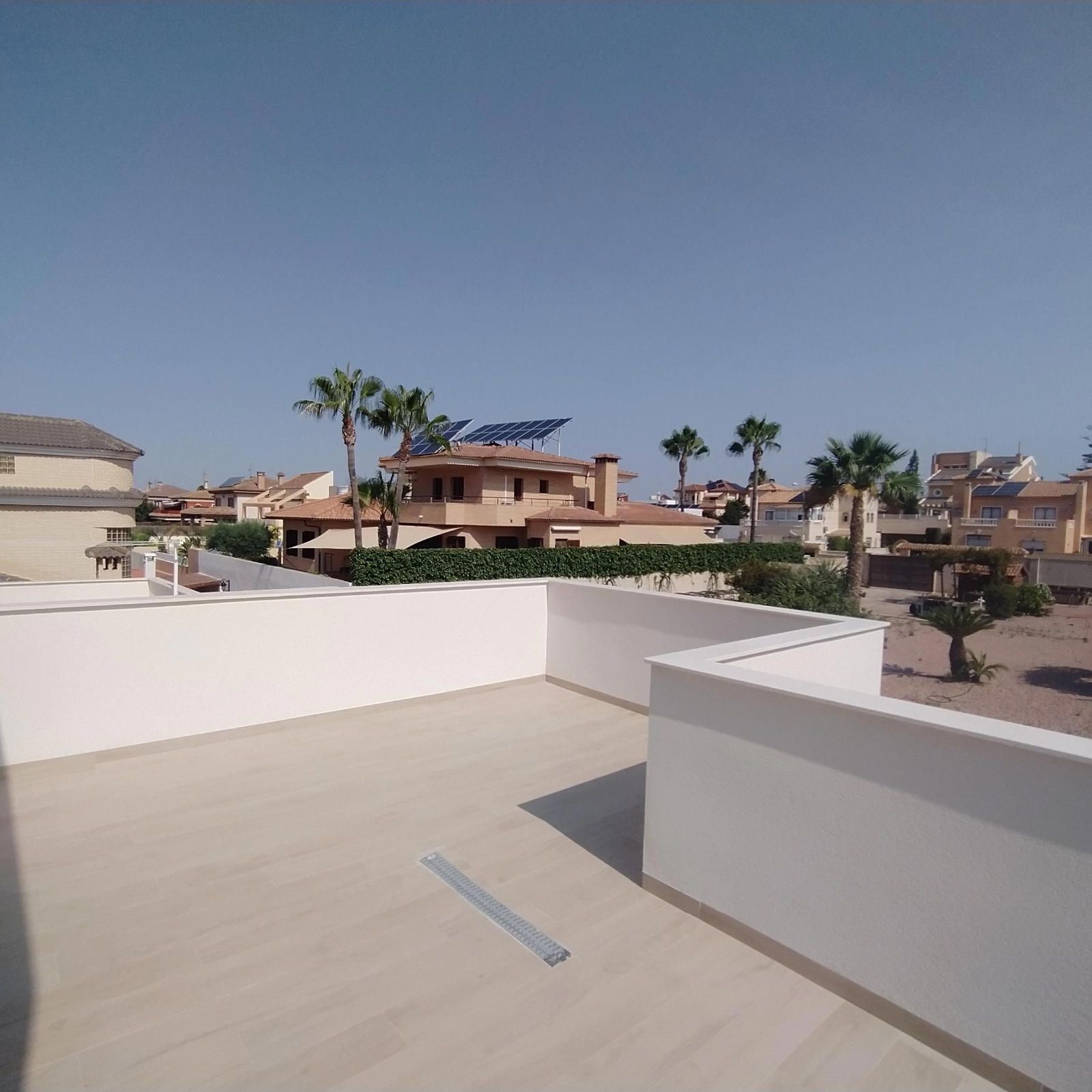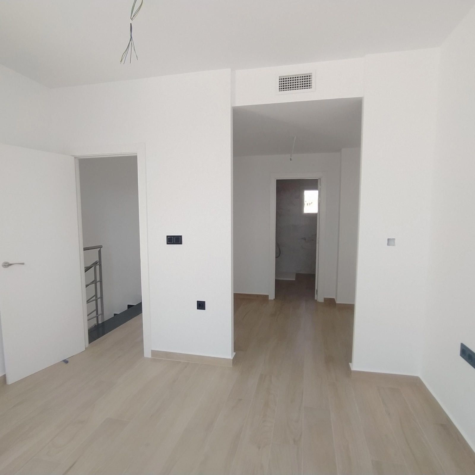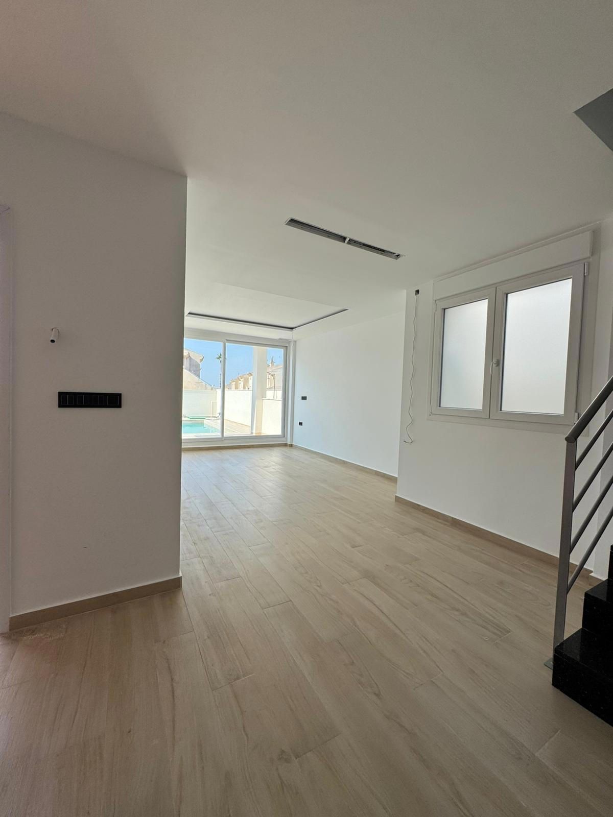 En planta baja encontramos un amplio salón con vista a la piscina, la cocina estilo francés abierta al salón, 2 dormitorios, 1 baño completo con ventana, y la escalera que lleva a la 1º planta; allí tenemos 1 amplio dormitorio con su vestidor, y con baño en suite completo y una salida al solárium, y una habitación para lo que es el calentador y la lavadora, con salida a otro solárium.
