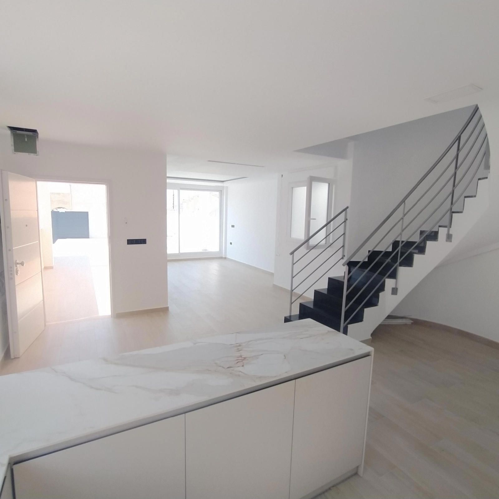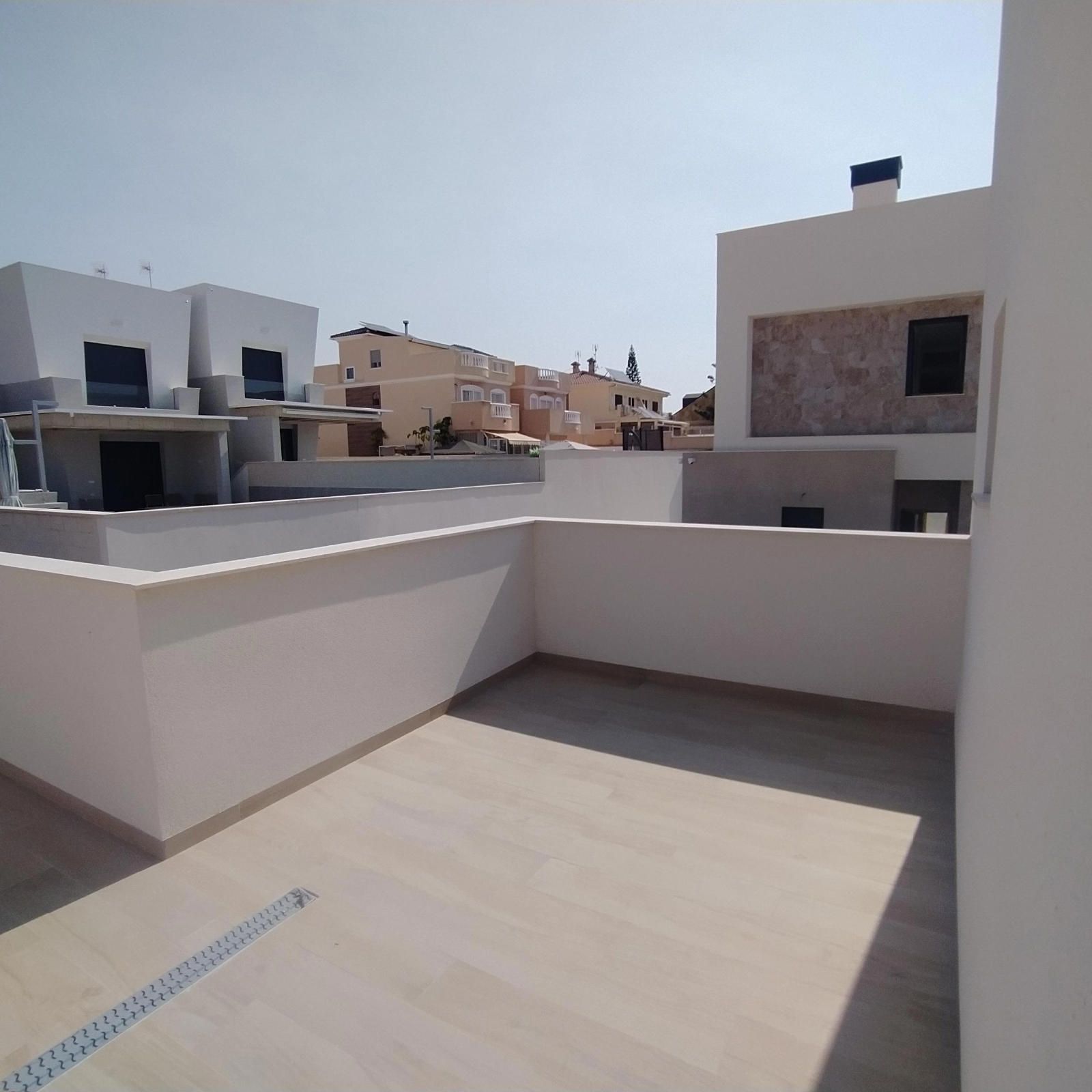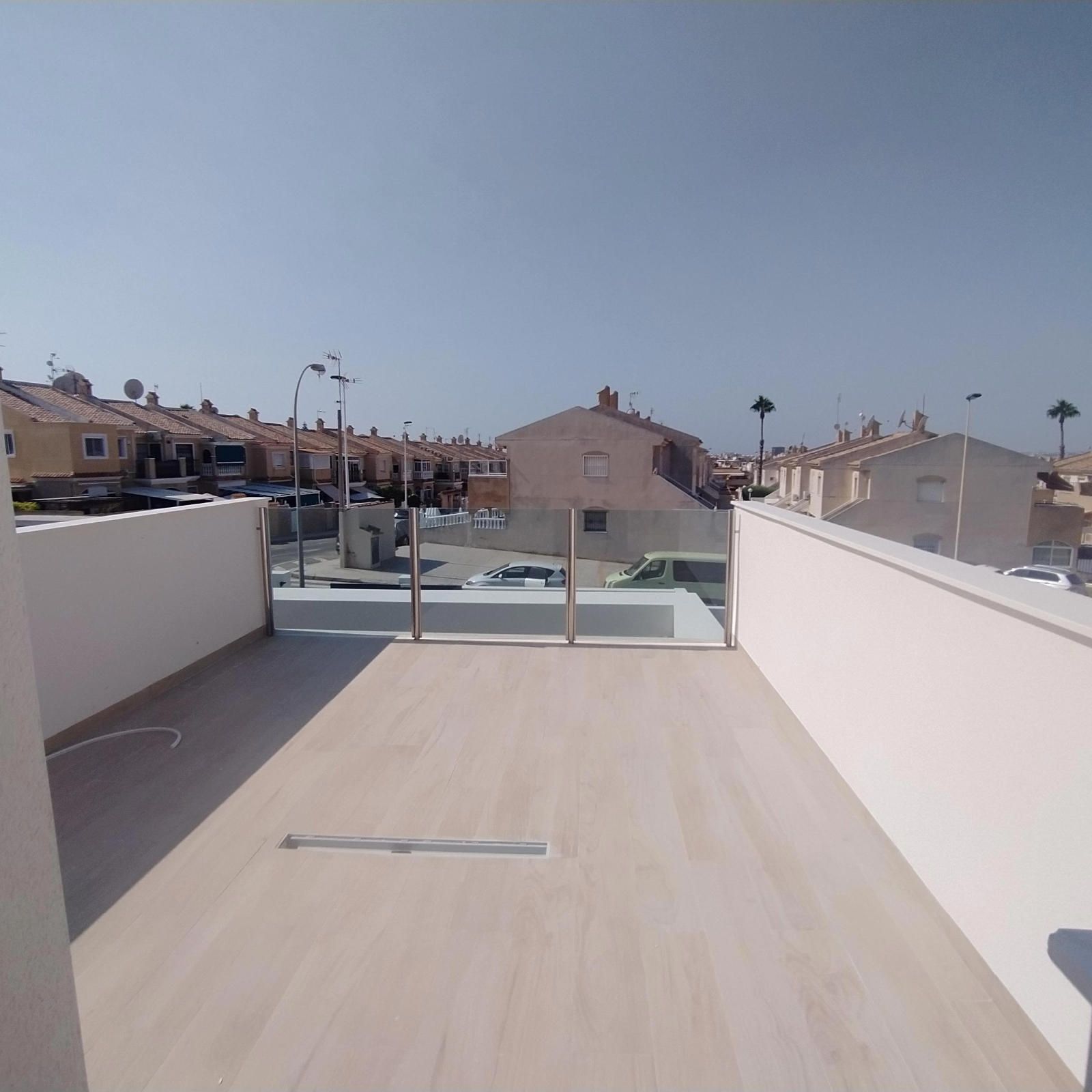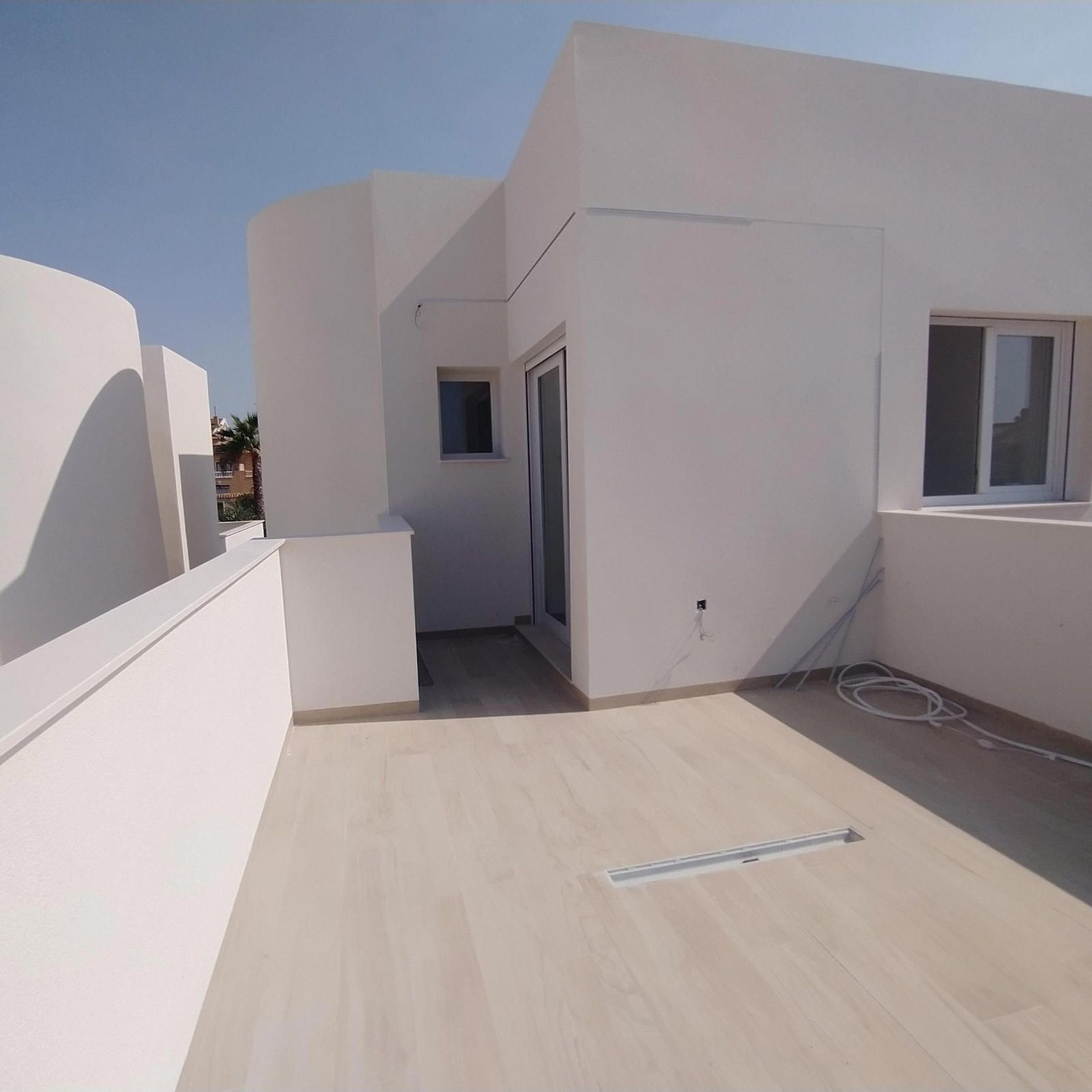 En planta baja encontramos un amplio salón con vista a la piscina, la cocina estilo francés abierta al salón, 2 dormitorios, 1 baño completo con ventana, y la escalera que lleva a la 1º planta; allí tenemos 1 amplio dormitorio con su vestidor, y con baño en suite completo y una salida al solárium, y una habitación para lo que es el calentador y la lavadora, con salida a otro solárium.