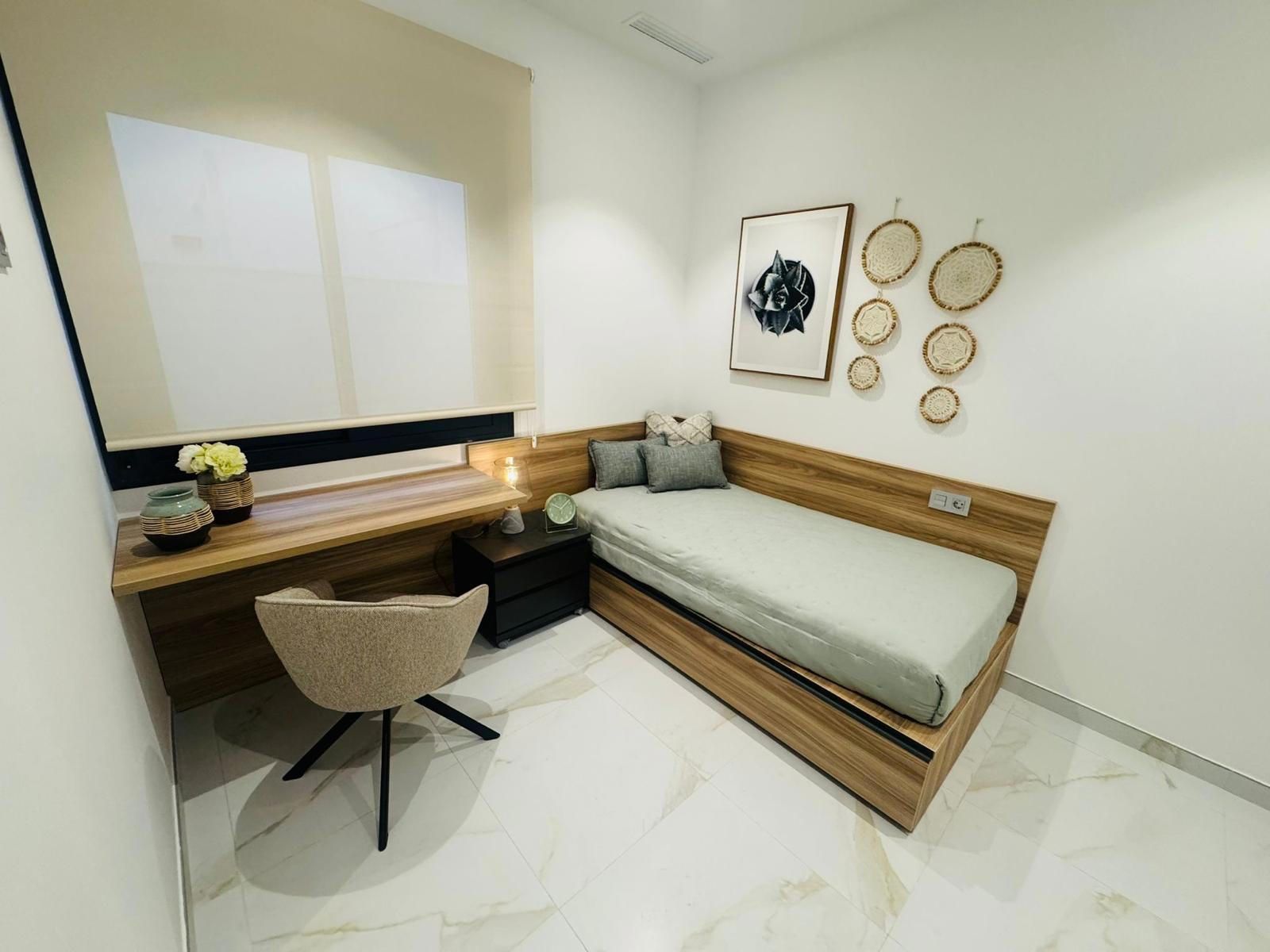 Este exclusivo chalet independiente, de una sola planta, ofrece una moderna distribución con 3 dormitorios, 2 baños, amplio salón-comedor y cocina abierta totalmente equipada con isla central y vistas a la piscina privada.