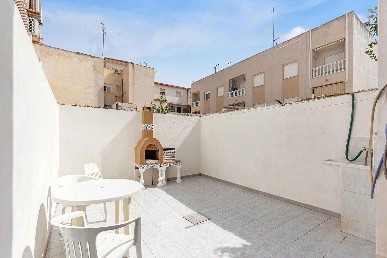 Gran patio trasero – con muchísimo potencial: zona de comedor exterior, espacio chill-out, jardincito, almacenaje… ¡lo que quieras!Y además, incluye una barbacoa de obra, perfecta para reuniones familiares, amigos o simplemente para disfrutar del aire libre todo el año.