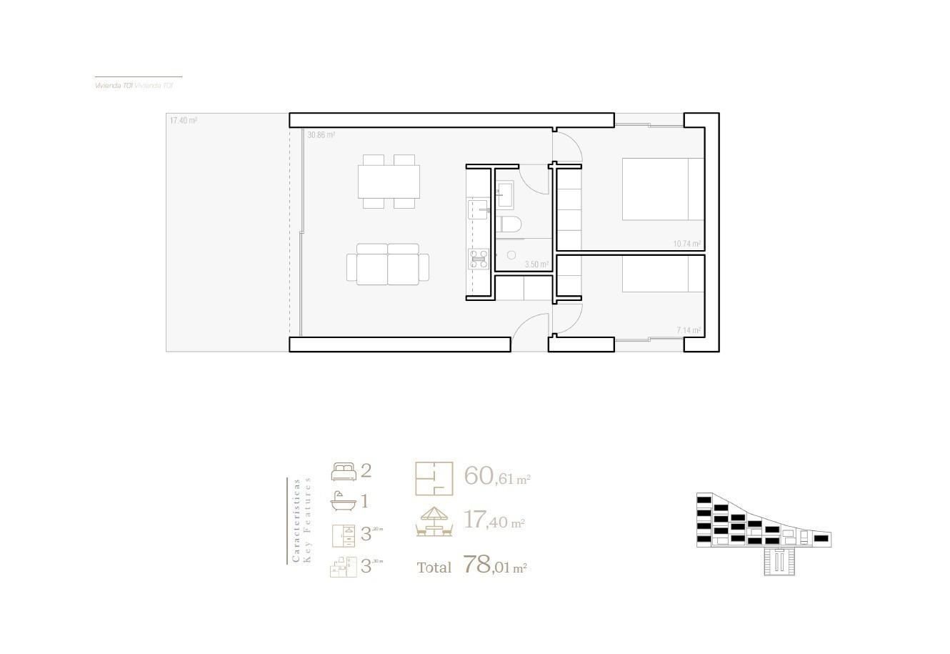 Todas las viviendas incluyen una plaza de aparcamiento privada, con trasteros disponibles como extra opcional. Zonas comunes y especificaciones de calidad Los residentes pueden disfrutar de una piscina comunitaria de bonito diseño con solárium, rodeada de jardines que crean un ambiente tranquilo y acogedor.