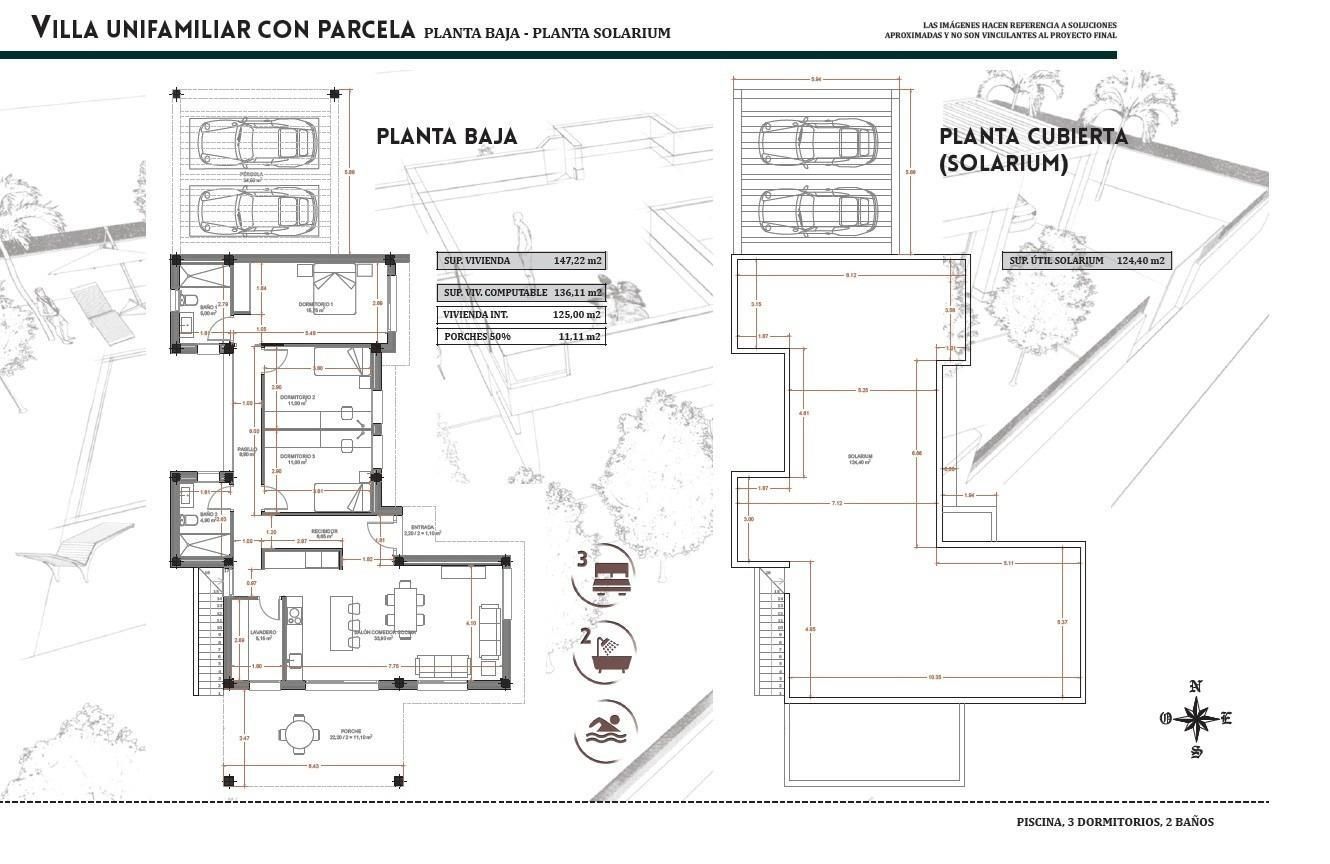 La generosa parcela de 750 m² también incluye una plaza de aparcamiento para dos vehículos. Solárium privado con vistas abiertas Uno de los aspectos más destacados de esta villa es el impresionante solárium privado de 120 m², al que se accede a través de una escalera exterior.