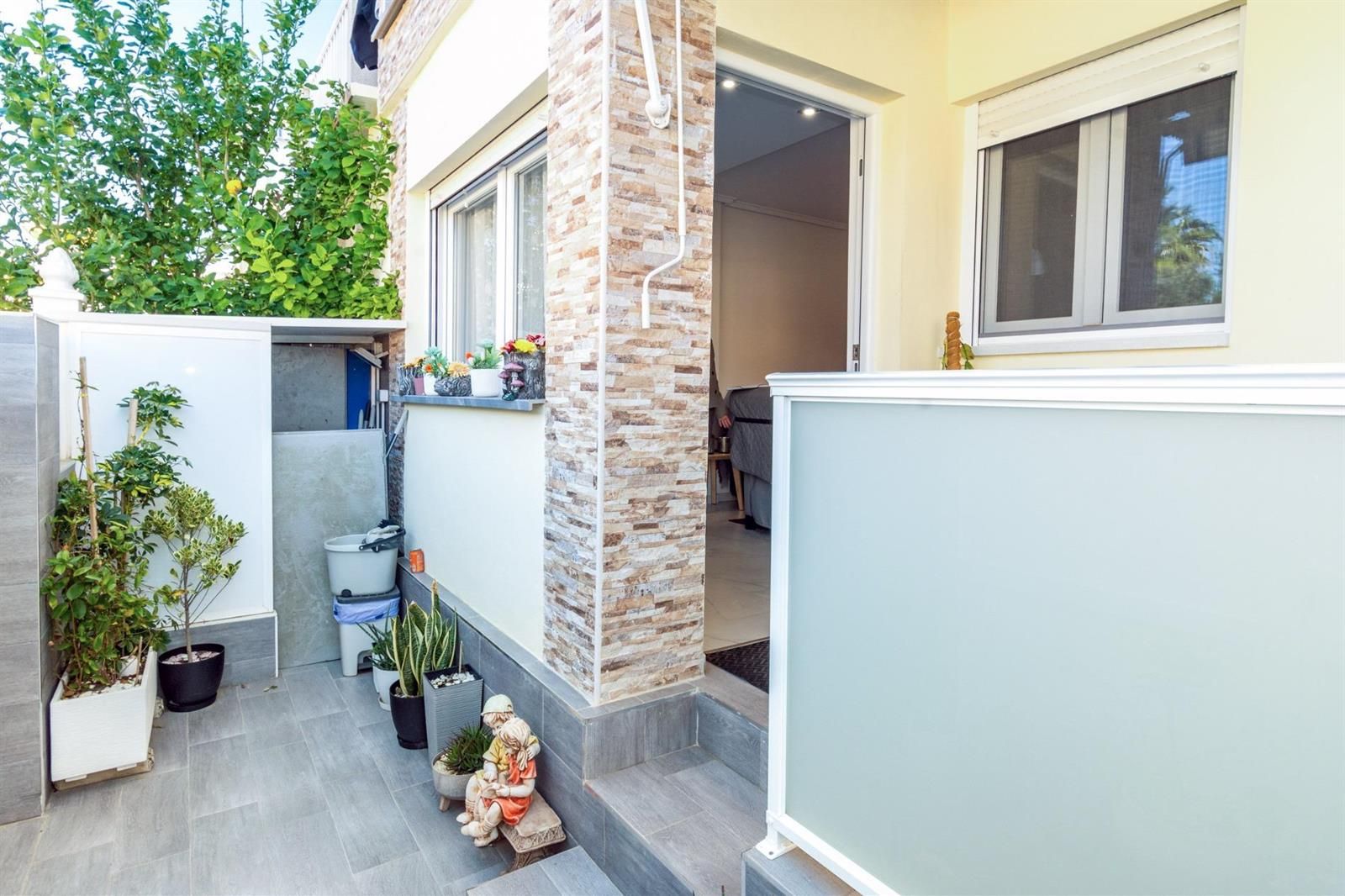 Desde aquí se accede a un agradable jardín privado con porche, ideal para disfrutar del exterior.