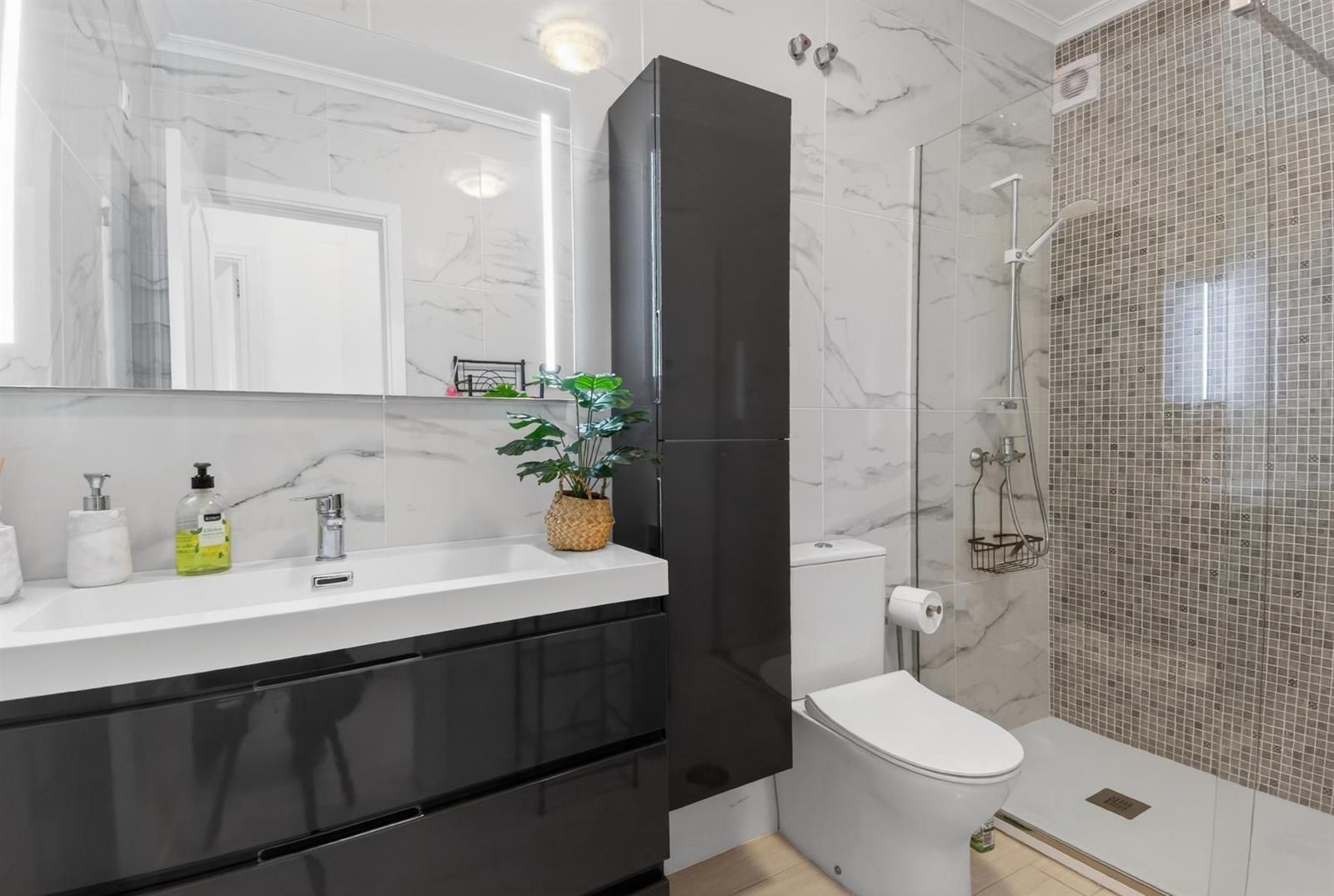 Dispone de 2 amplios dormitorios, destacando el principal con baño en suite, completamente reformado, con suelo radiante y salida directa a un pequeño patio trasero, aportando un espacio adicional al aire libre.